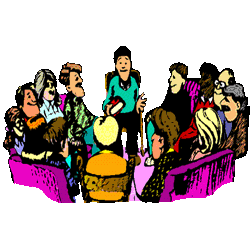 Members bring along cuttings or articles from newspapers or magazines and then go round the table
