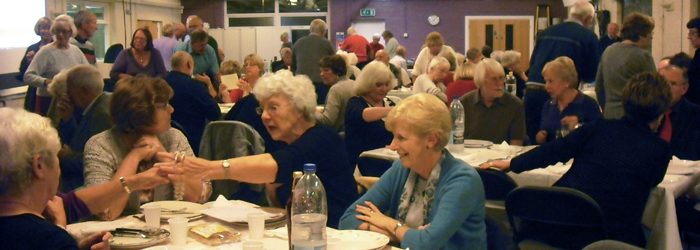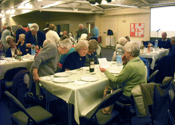 U3A's Chairman, Ron Britton, with Barrie Jackson compiling the scores. After the meal, two 'heads and tails' raffles took place,